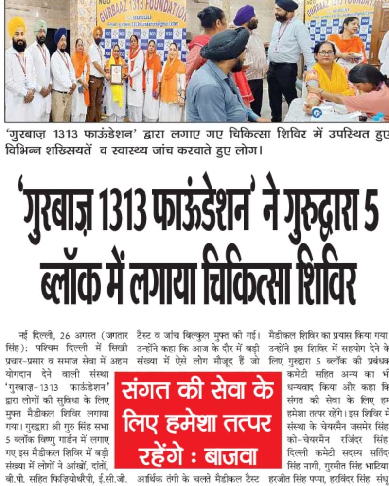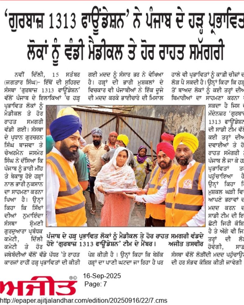 Gurbaaz 1313 Foundation is a registered non-profit organization driven by the spirit of sewa — selfless service.